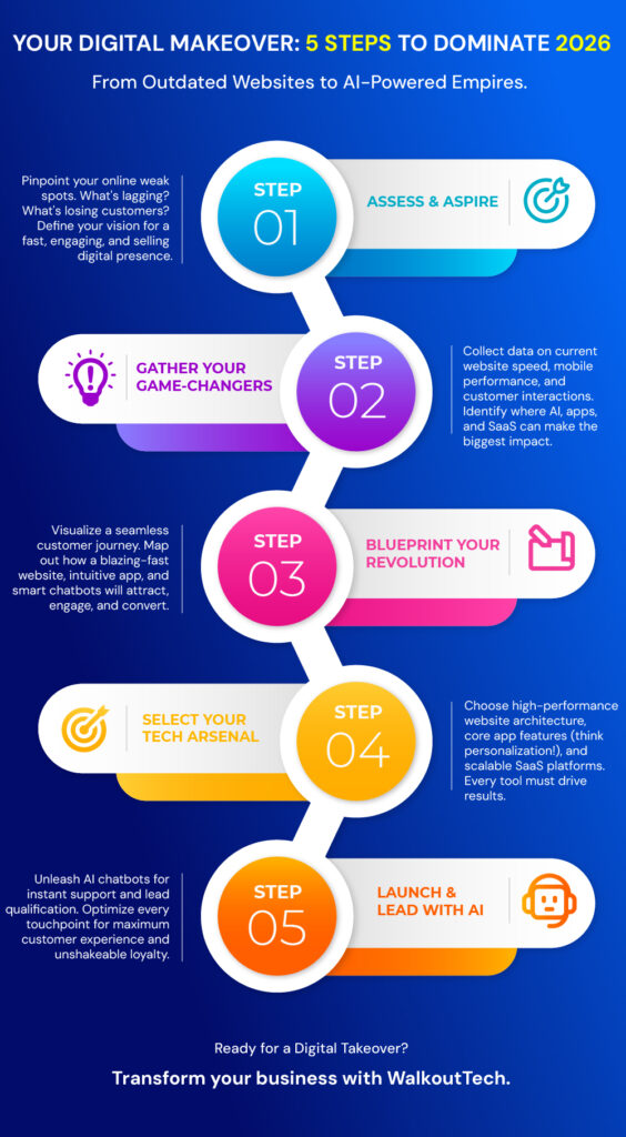 A digital makeover means a change of your online presence entirely, from designing your website to building an app to AI Chatbots and SaaS integration, to increase positive customer experience and business efficiency.